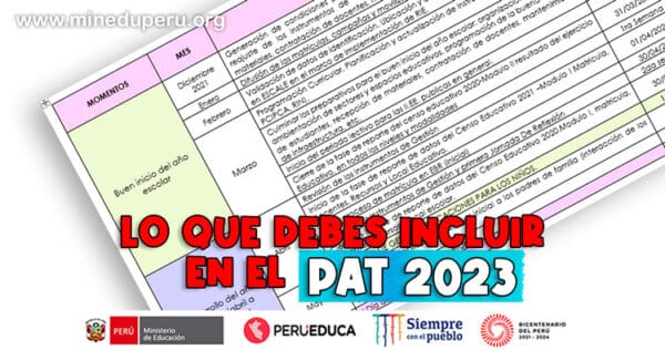 Según la RM N° 474-2022-MINEDU, en su artículo 9.2, sugiere que actividades deben de ser consideradas durante el año escolar 2023, muy a parte de las actividades comúnmente programadas en el PAT por la Institución Educativa.