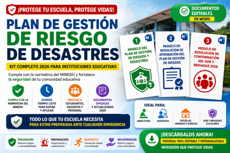 El modelo del Plan de Gestión de Riesgo de Desastres en instituciones educativas 2026 es una herramienta indispensable para garantizar la seguridad escolar. Integrar el plan, la resolución de aprobación y la conformación del GDR permite construir un sistema completo, organizado y efectivo frente a emergencias.