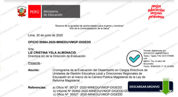 Nuevo cronograma descritos en el Oficio 564-2020-MINEDU/VMGP-DIGEDD.